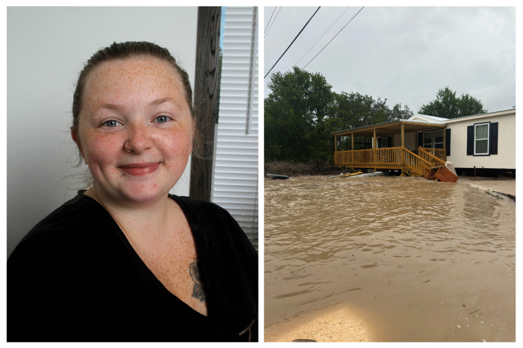 “It was very chaotic, very scary. I almost got swept under the house, but thankfully, my boyfriend James grabbed me. Our truck was partially submerged, but thankfully it still ran, so we made it to a hotel that night. But we had to pay out of pocket, and we barely had any money. That was really tough.”