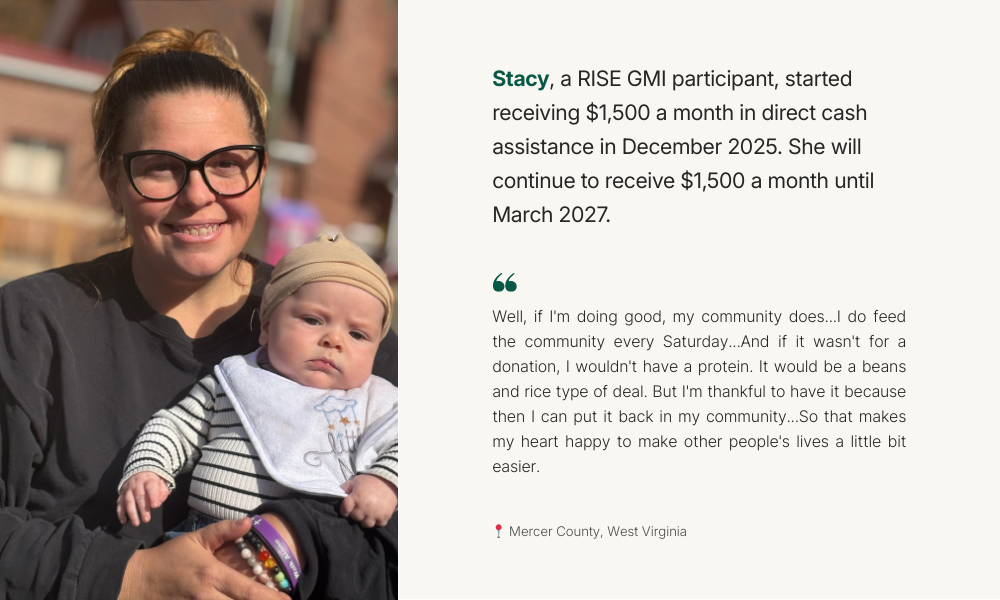 Cash delivered through RISE GMI aims to revitalize communities left behind, we can drive local, state, and even national policy change — cementing cash as a critical tool in our social safety net.
