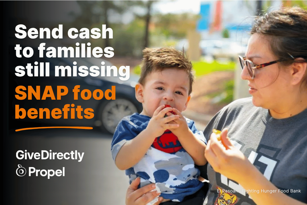 GiveDirectly & Propel are distributing one-time $50 cash transfers to households with children who receive the maximum SNAP allotment, a key indicator of extremely low income. Each day, we’re sending funds through the Propel app to families who have missed their expected SNAP deposits.