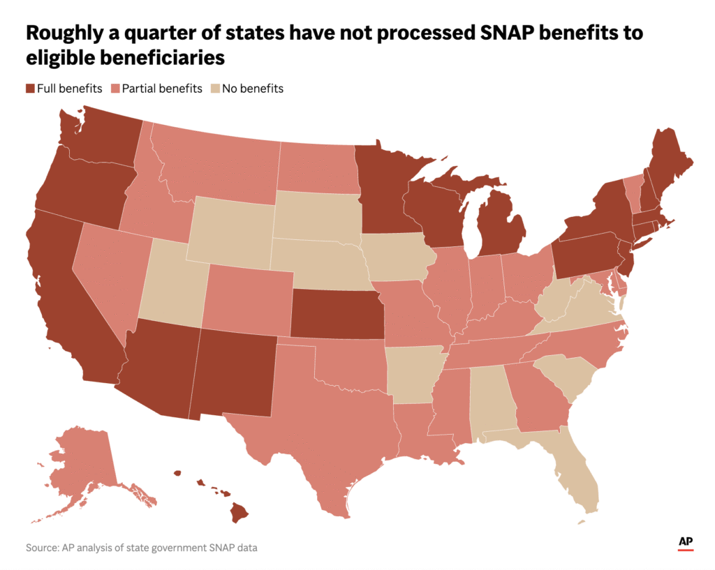 Since November 1, millions of Americans have missed their monthly SNAP food benefits due to the government shutdown. The government shutdown has ended, but not all states have been able to restart full SNAP benefits to all families.